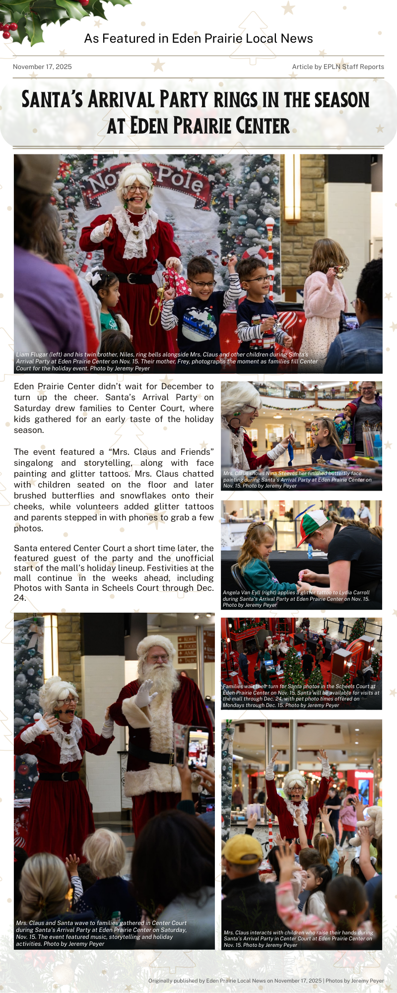 Santa’s Arrival Party rings in the Season at Eden Prairie Center